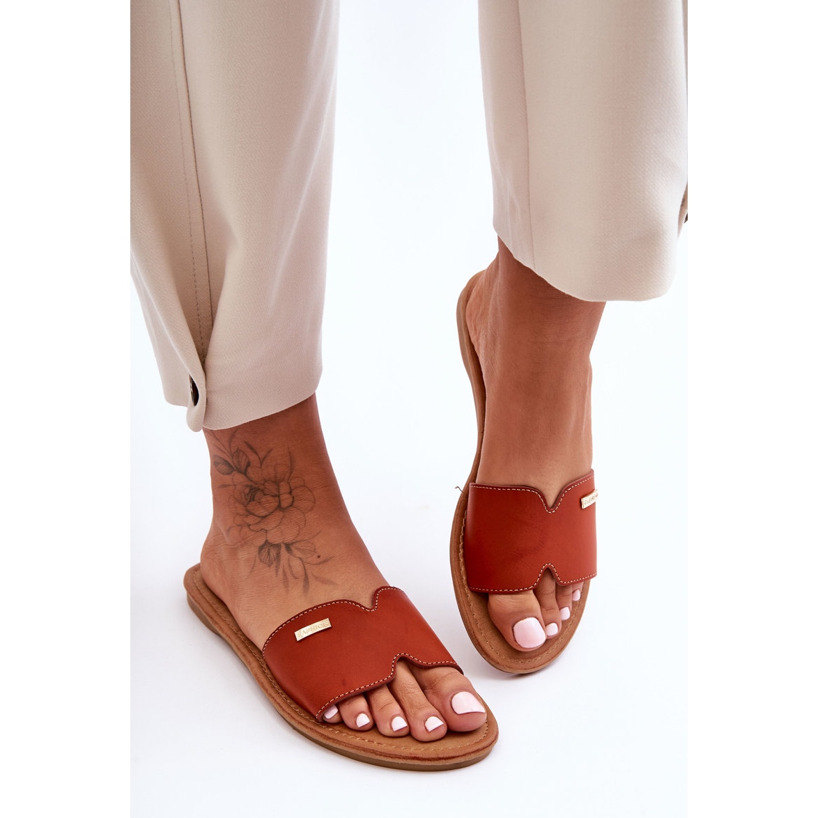 Discover unparalleled comfort and style with the Coraline women's flat sandals in an elegant brown color. These classic sandals are made of high-quality eco-leather, which makes them both durable and environmentally friendly. The decorative plate on the front adds charm, and the flat heel makes them ideal for everyday use.