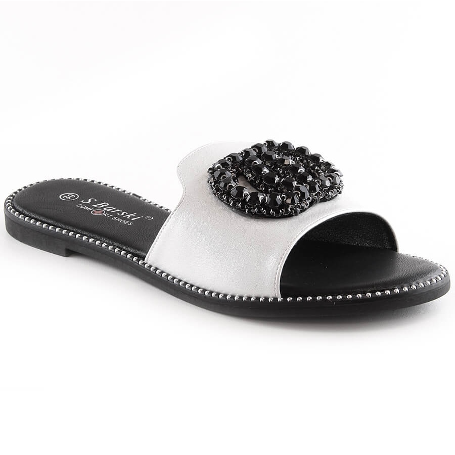 Details: Women's comfortable flat slippers with zircons silver S.Barski Kv 520-30