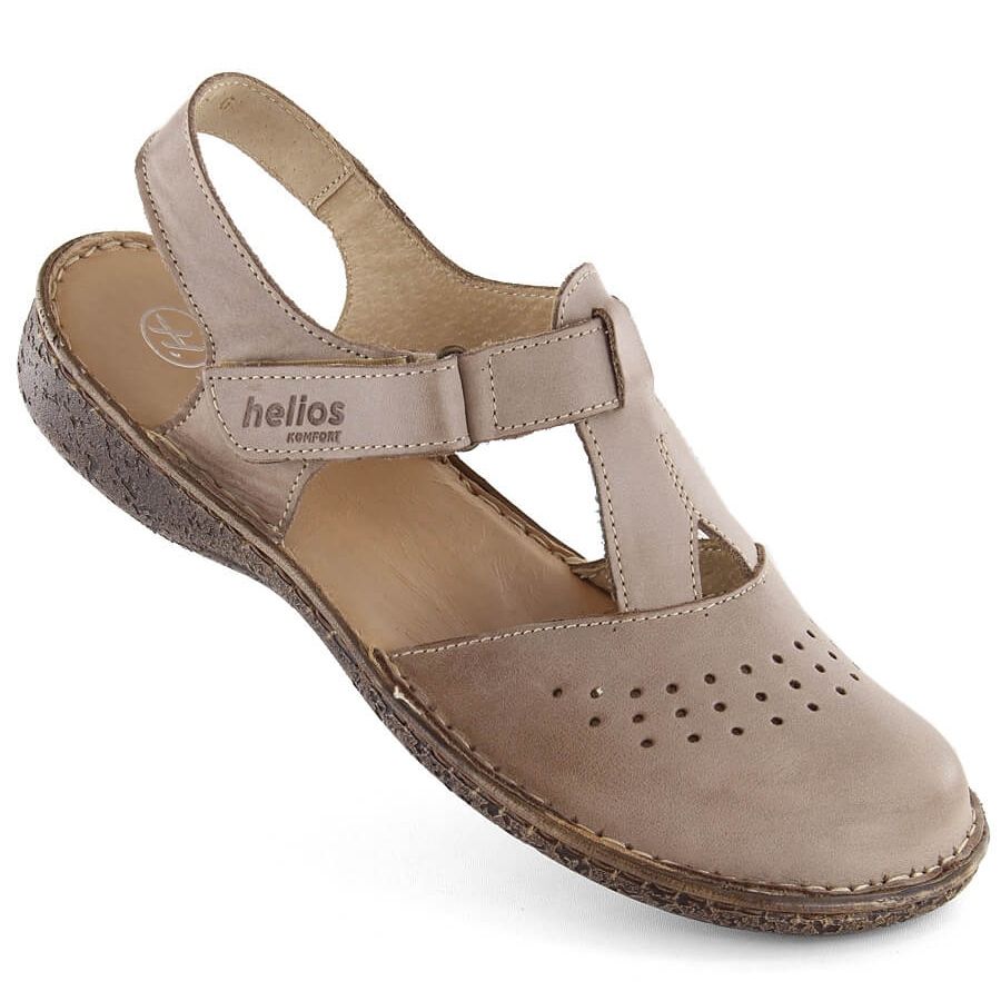 Helios 128.02 sandals are characterized by a classic design with a round toe and a 3 cm flat heel, which is comfortable during everyday walks. Velcro fastening ensures easy putting on and adjusting to the foot, which additionally increases the comfort of use.