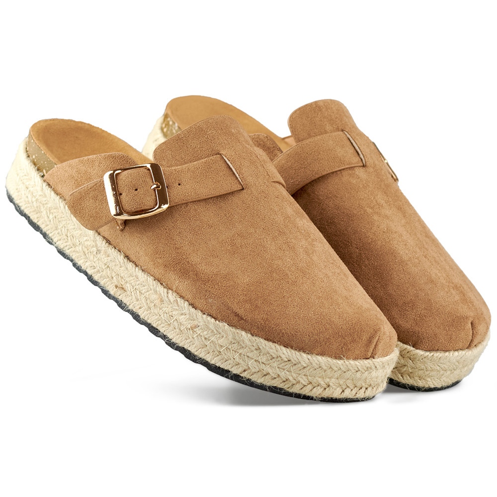 Inna marka Women's covered espadrilles with a buckle, light brown