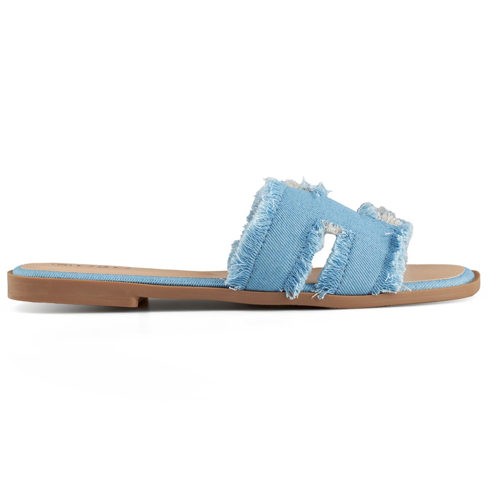 Discover comfort and style in summer days with female denim flaps on a flat sole in blue. These fashionable flip flops, created by another brand, perfectly fit into everyday stylizations, providing not only comfort, but also a unique character.