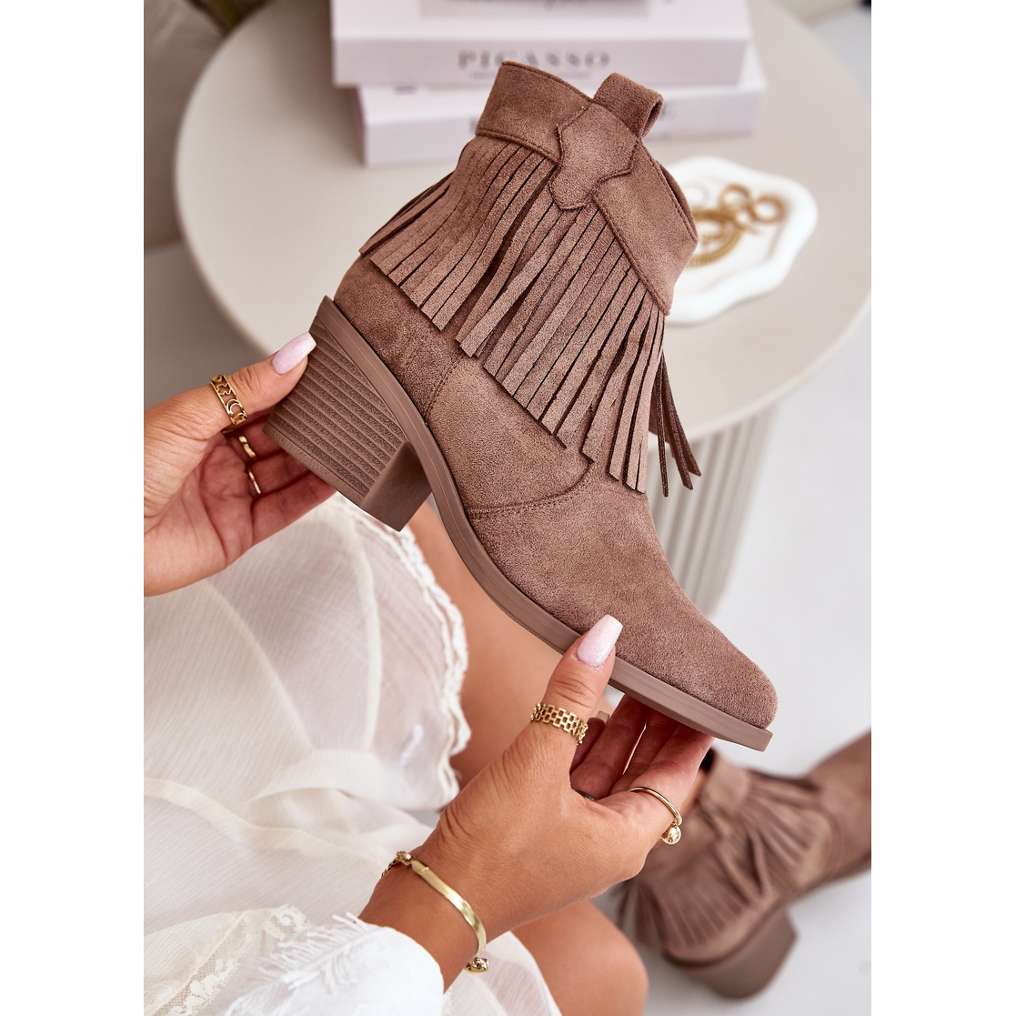 Details: Women's Eco-Elendian brown boots with fringes s.barski HY42-127 beige
