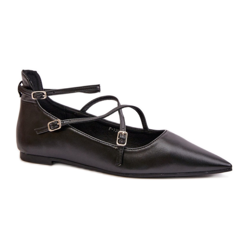 Details: Women's eco-leather ballet flats with a pointed toe, Black