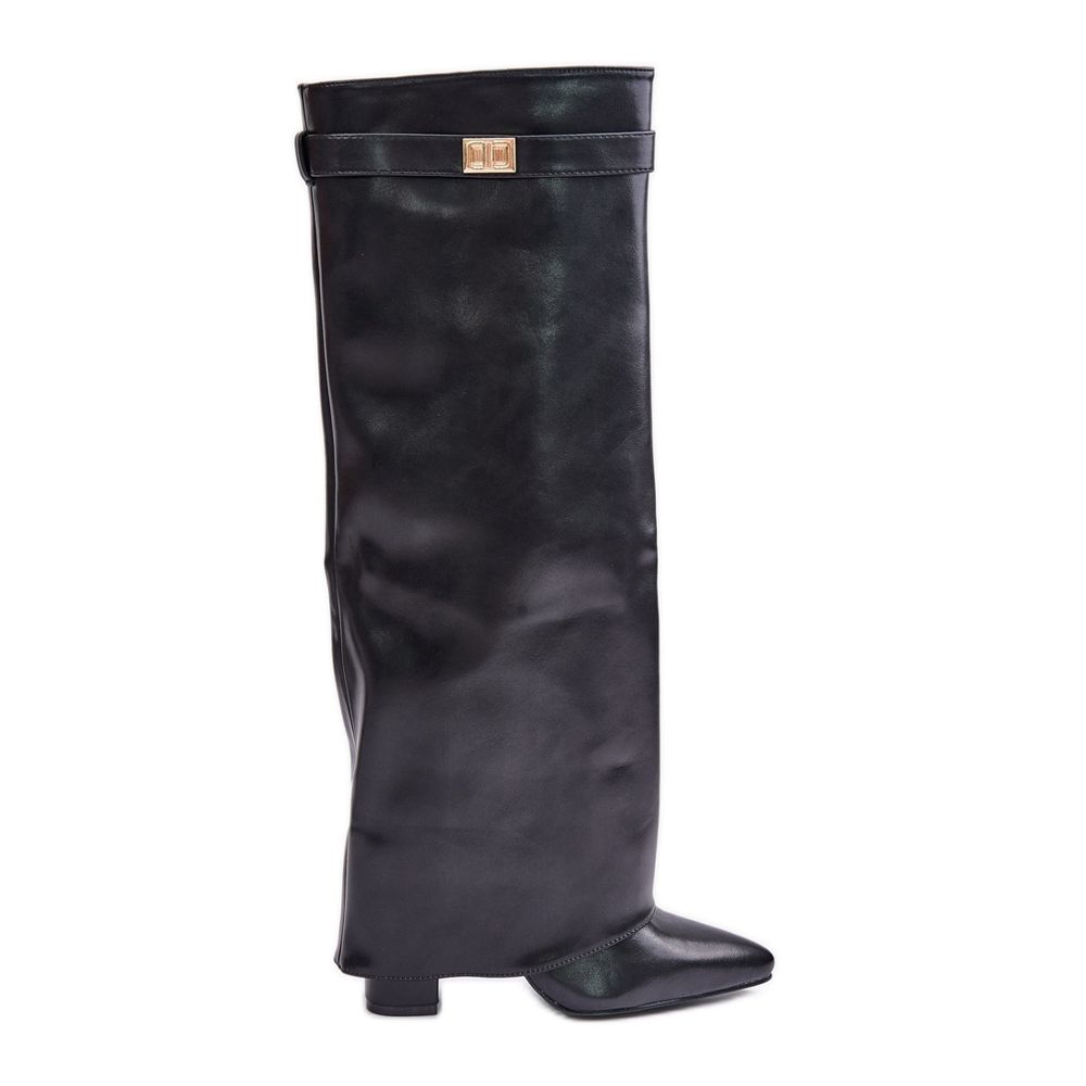 Inna marka Women's Eco Leather Boots With Rolled Upper On A Heel Black Avamora