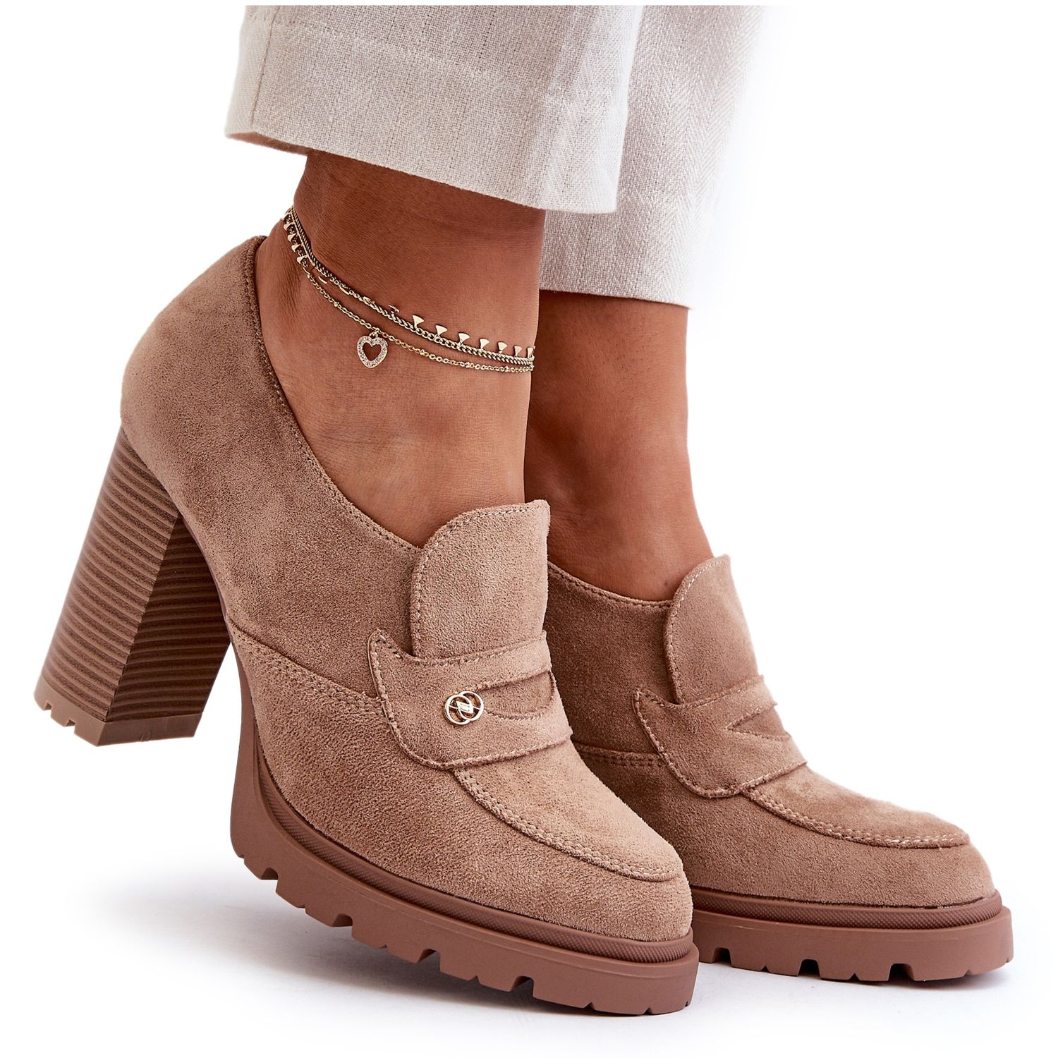 Details: Evento Women's Eco Suede Shoes on a High Heel Beige Larmaves