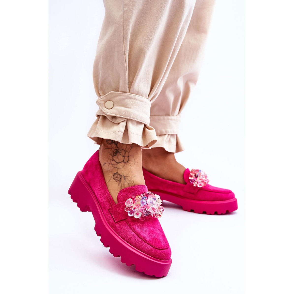 Enthusiasts of expressive, but at the same time comfortable solutions in urban fashion, will be delighted with the latest proposition from the manufacturer FB2 - Women's Moccasins On A Platform With Decorations Fuchsia Brenda. These charming shoes in a shade of energetic pink are the essence of style and comfort - perfect for many spring and autumn styles.