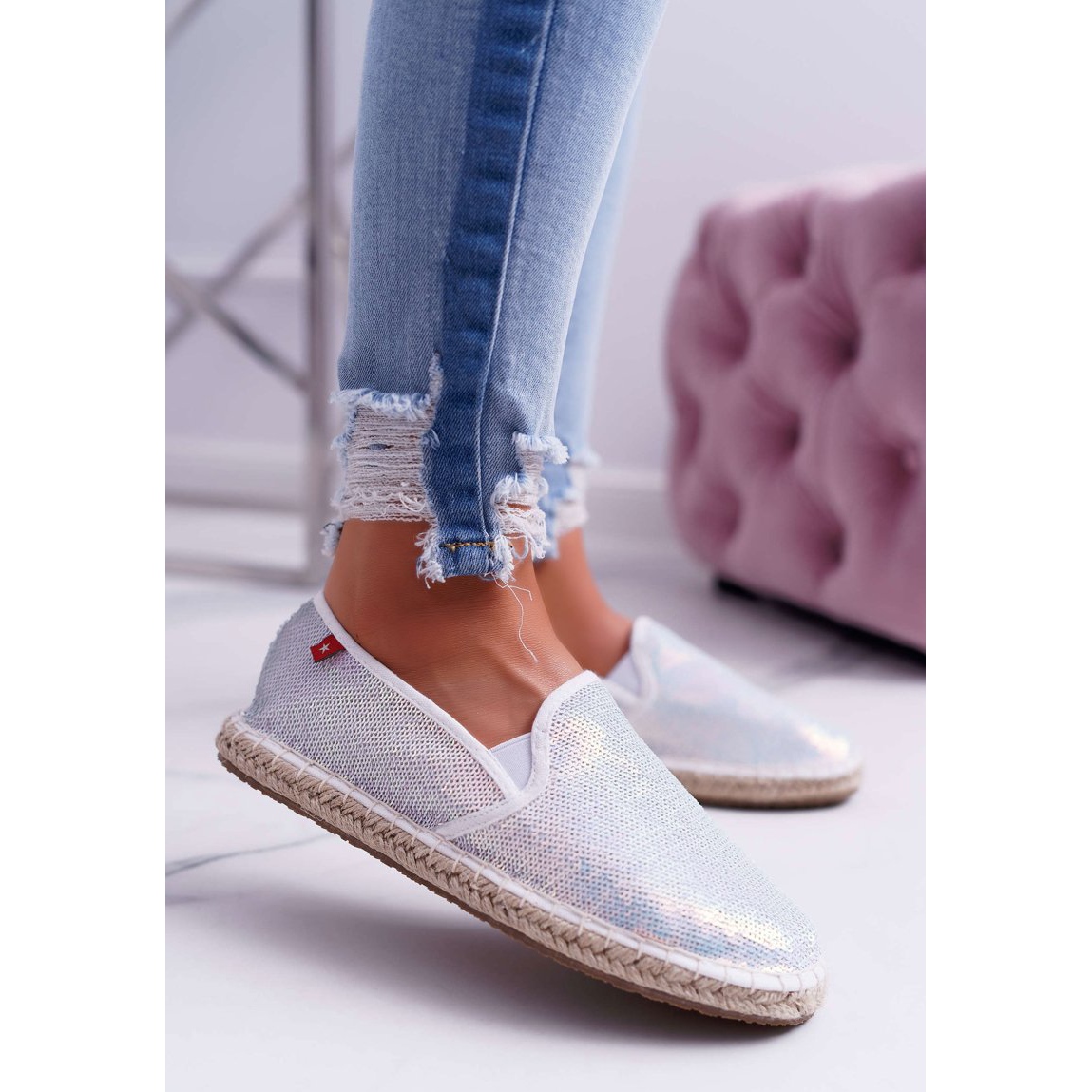 Details: Women's Espadrilles Big Star Iridescent Sequins White DD274A162