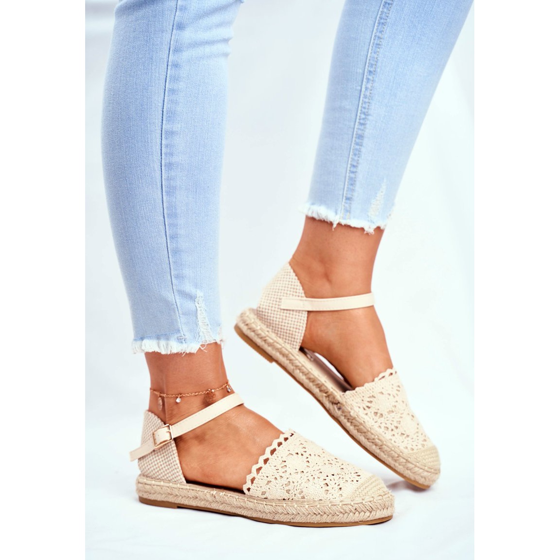 The lace detail around the sole adds a stylish edge, while the lace toe adds a touch of unique summer chic. The classic ankle strap not only accentuates the shape of your foot, but also ensures a perfect fit.