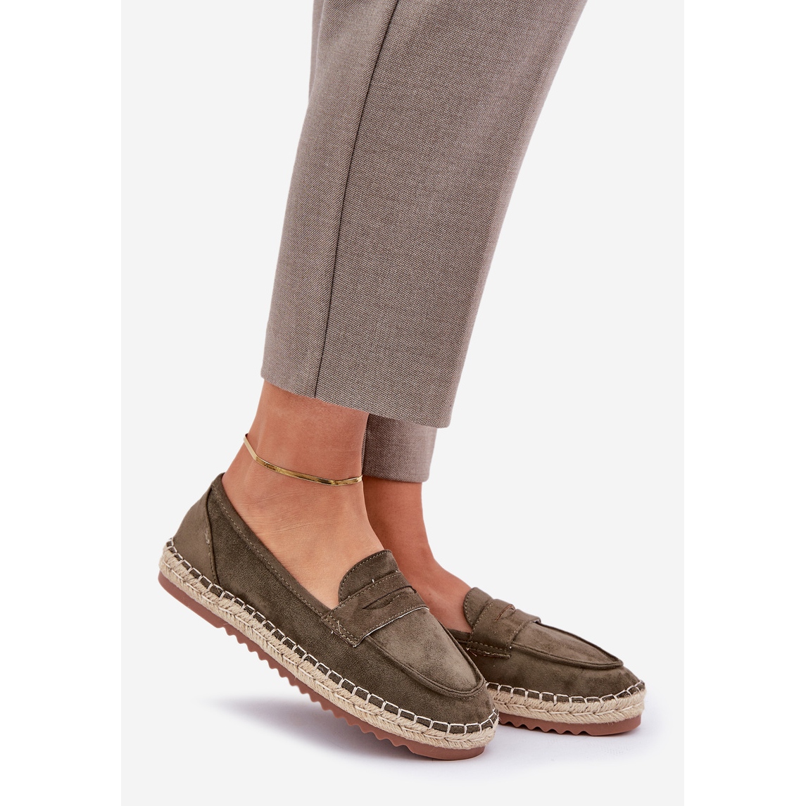 Inna marka Women's espadrilles with a jute braid on a flat sole dark green