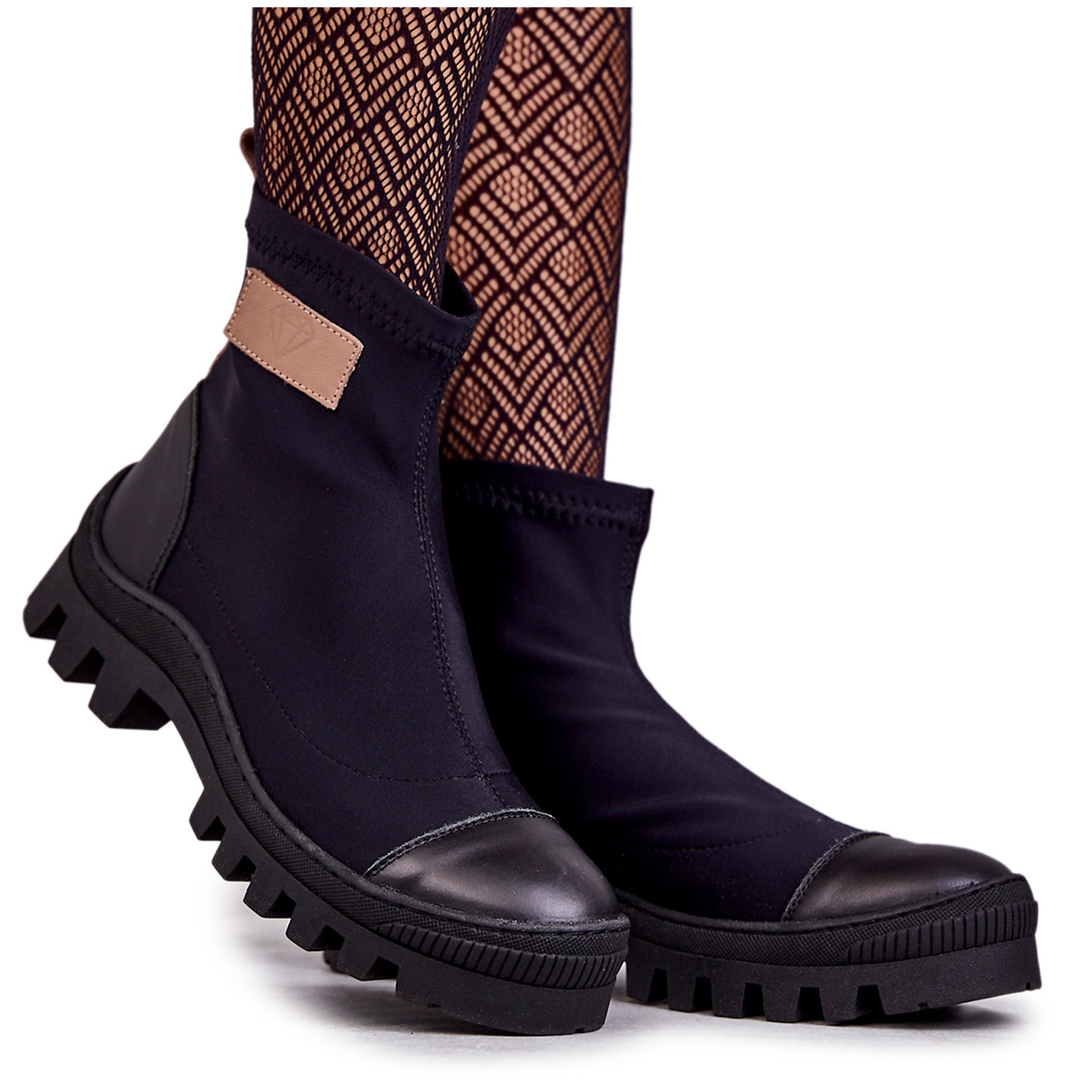 Women's Material Ankle Boots Nicole 2703 Black are the perfect choice for women who value comfort, style and high quality workmanship. The ankle boots have been carefully made of textile material, which makes them both elegant and practical. Set on a flat heel with a thicker, rubber sole, they provide stability and comfort during everyday use.