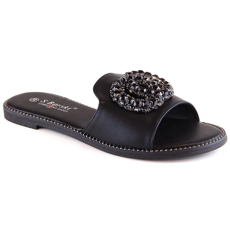 S.Barski Women's flat comfortable slippers with zircons black S.Barski Kv 520-30