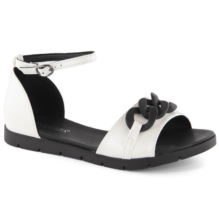Vinceza Women's flat sandals with a chain, white Vinceza 17320