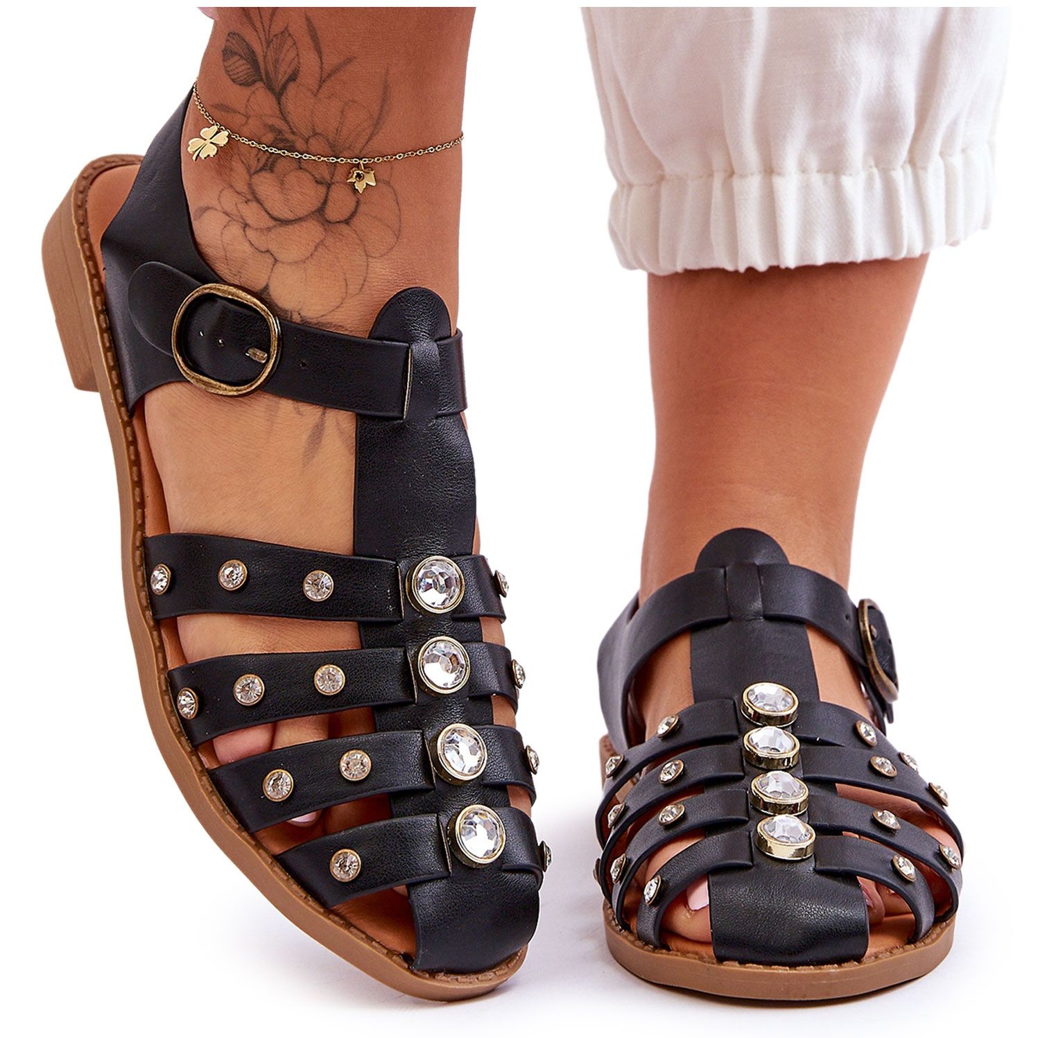 Inna marka Women's Flat Sandals With Zircons Black Ascot