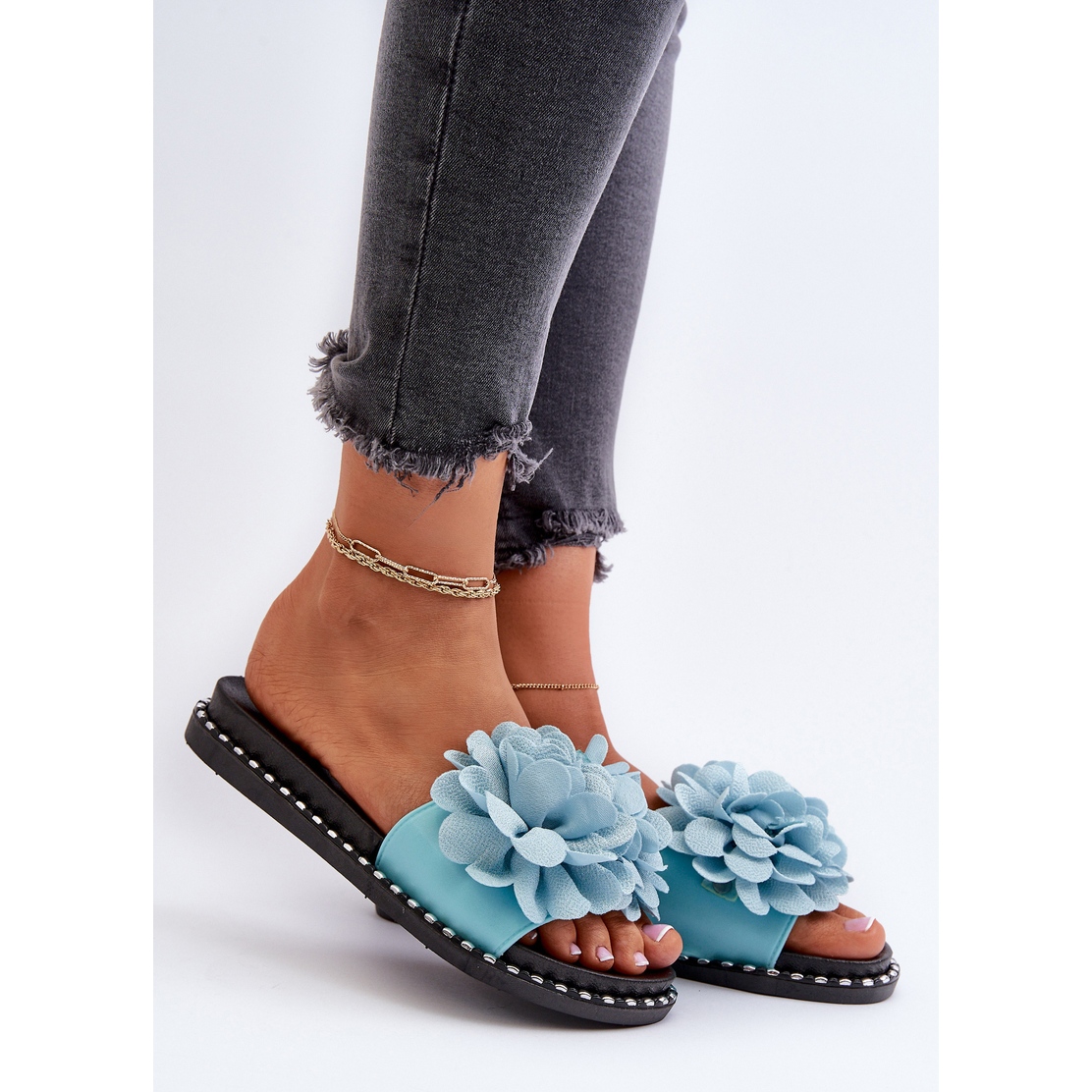 Details: Women's Flip-Flops Decorated with Flowers, Blue Cellanen