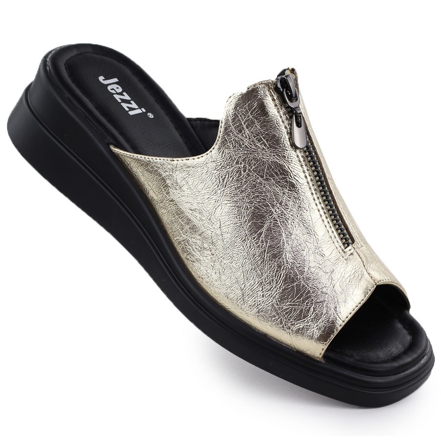 Are you looking for the perfect flip -flops for warm summer days? Here are women's wedges in a metallic golden color from the Jezzi brand, the ASA266-2 model. These stylish flip flops combine comfort with fashionable design, which makes them a great addition to any female stylization.
