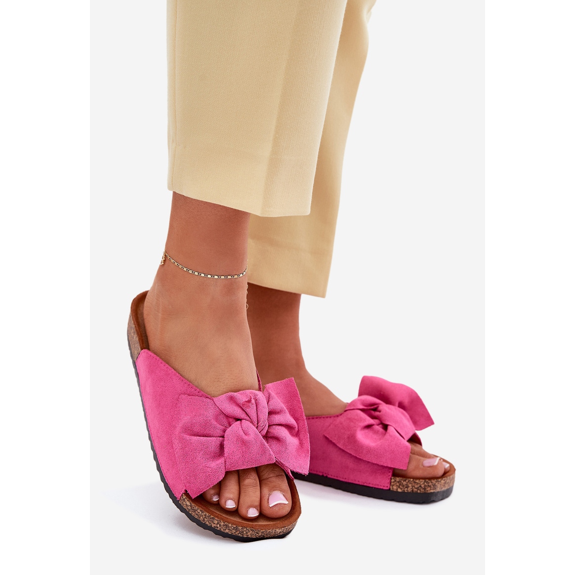 Inna marka Women's flip flops on a cork sole with a bow of fuchsia pink