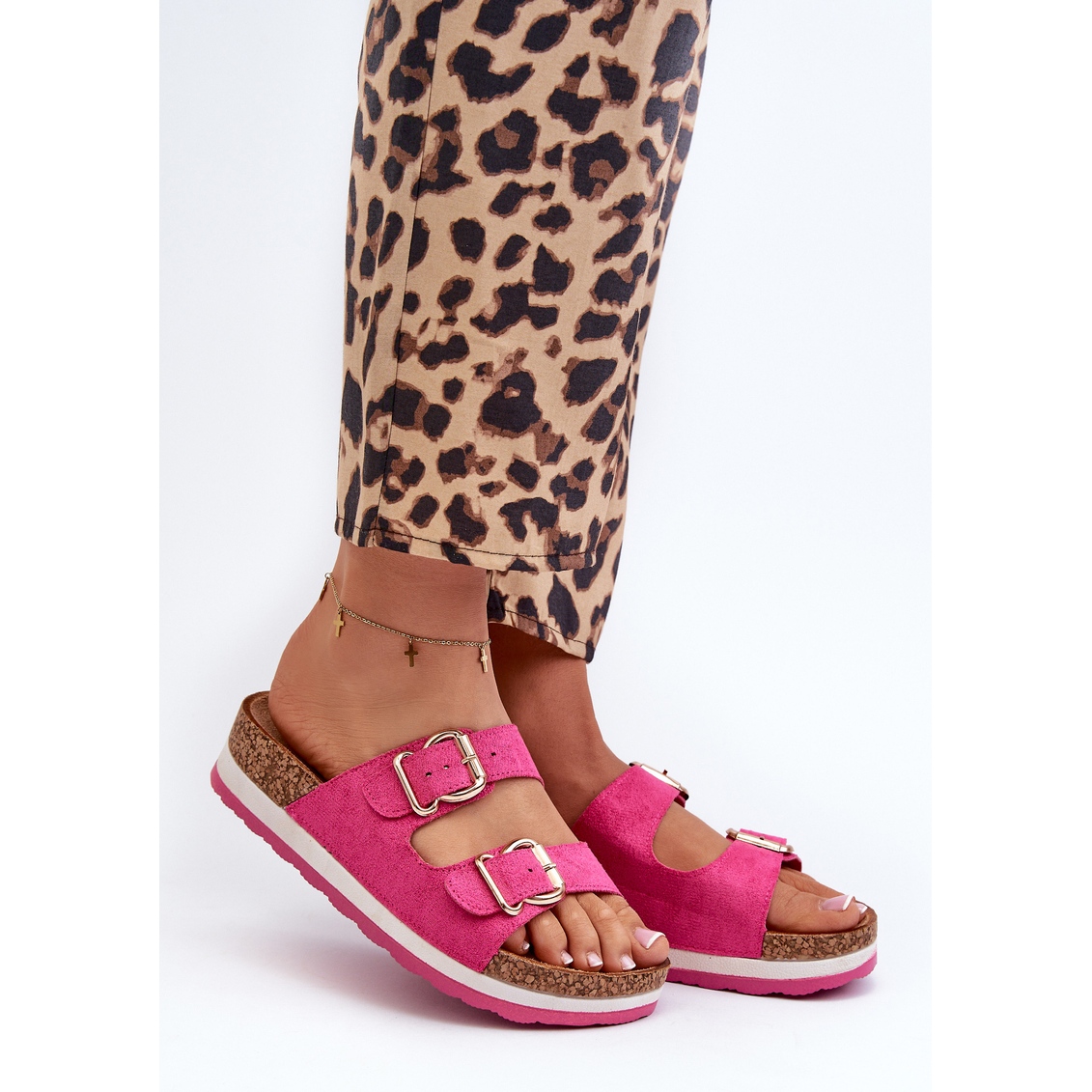 Details: Women's Flip-flops On The Platform With Buckles Eco Suede Fuchsia Ursila pink