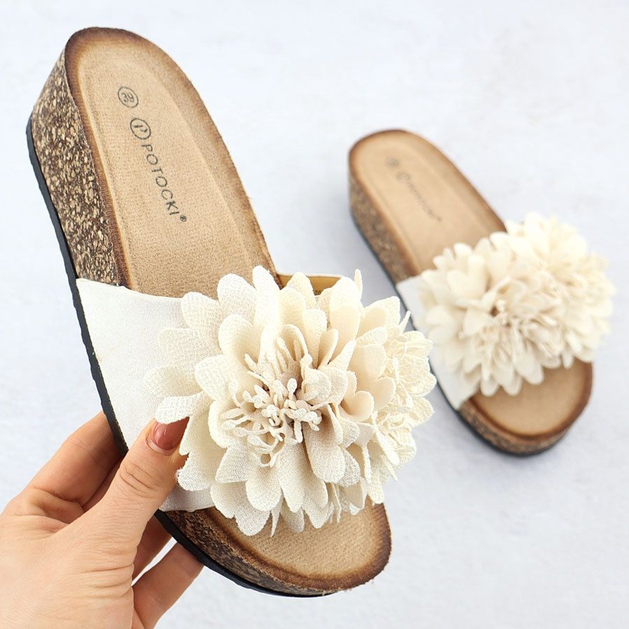 Details: Women's flip -flops on wedges beige flowers from Potocki GN17300