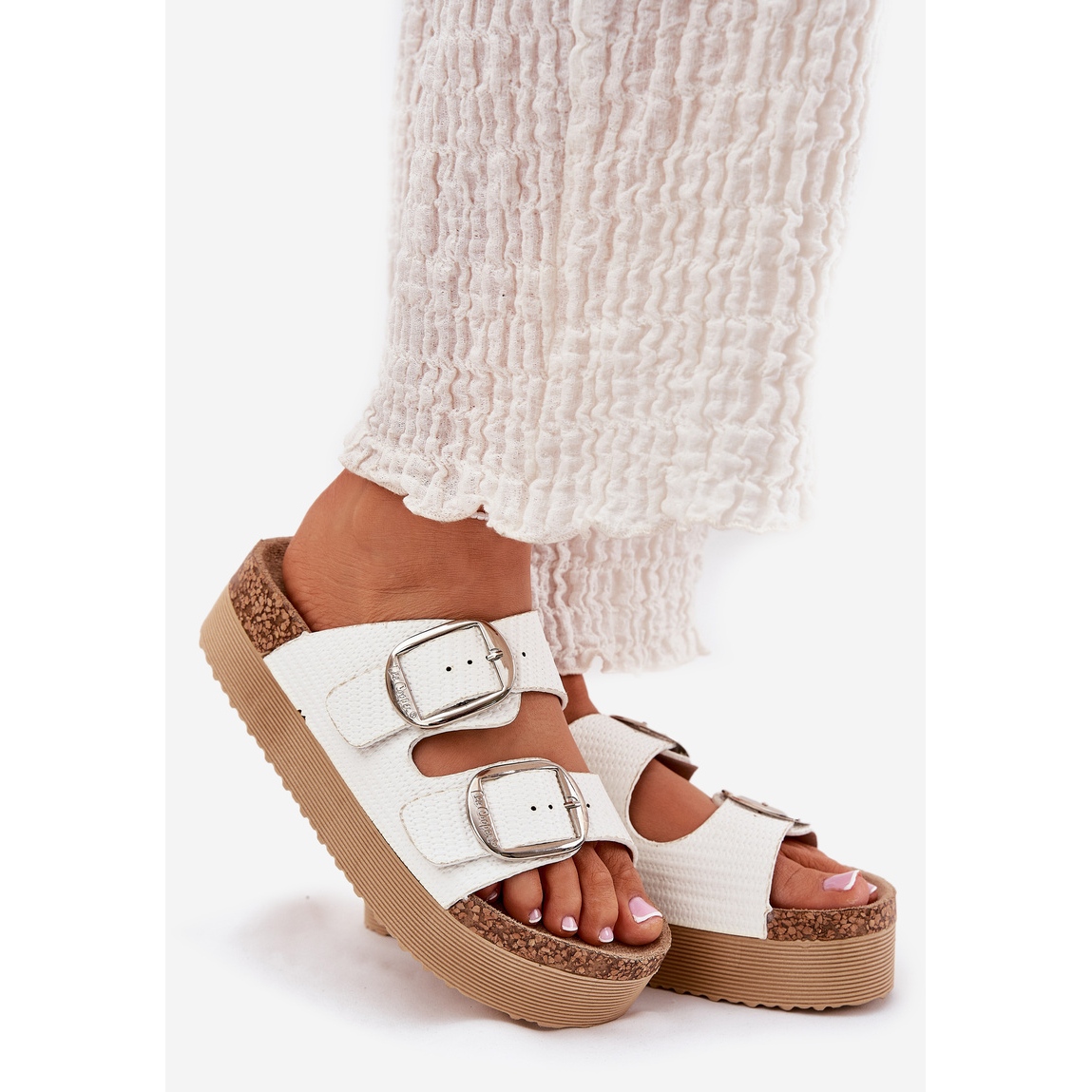 Women's flip flops on the platform with Lee Cooper LCW-25-35-3496L buckle in white is an ideal proposition for women who are looking for a combination of convenience with fashionable style. Set on a massive platform with a height of 4.5 cm, these flip flops perfectly emphasize summer stylizations, giving them a unique character.