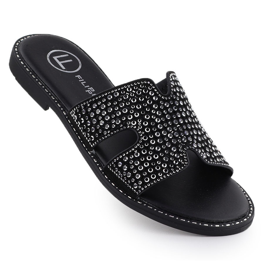 Women's flip flops with rhinestones black Filippo DK6973 is a great choice for women looking for fashionable and convenient solutions every day. The renowned Filippo brand combines modern design with high quality, which makes these flip flops an ideal companion in everyday activities.