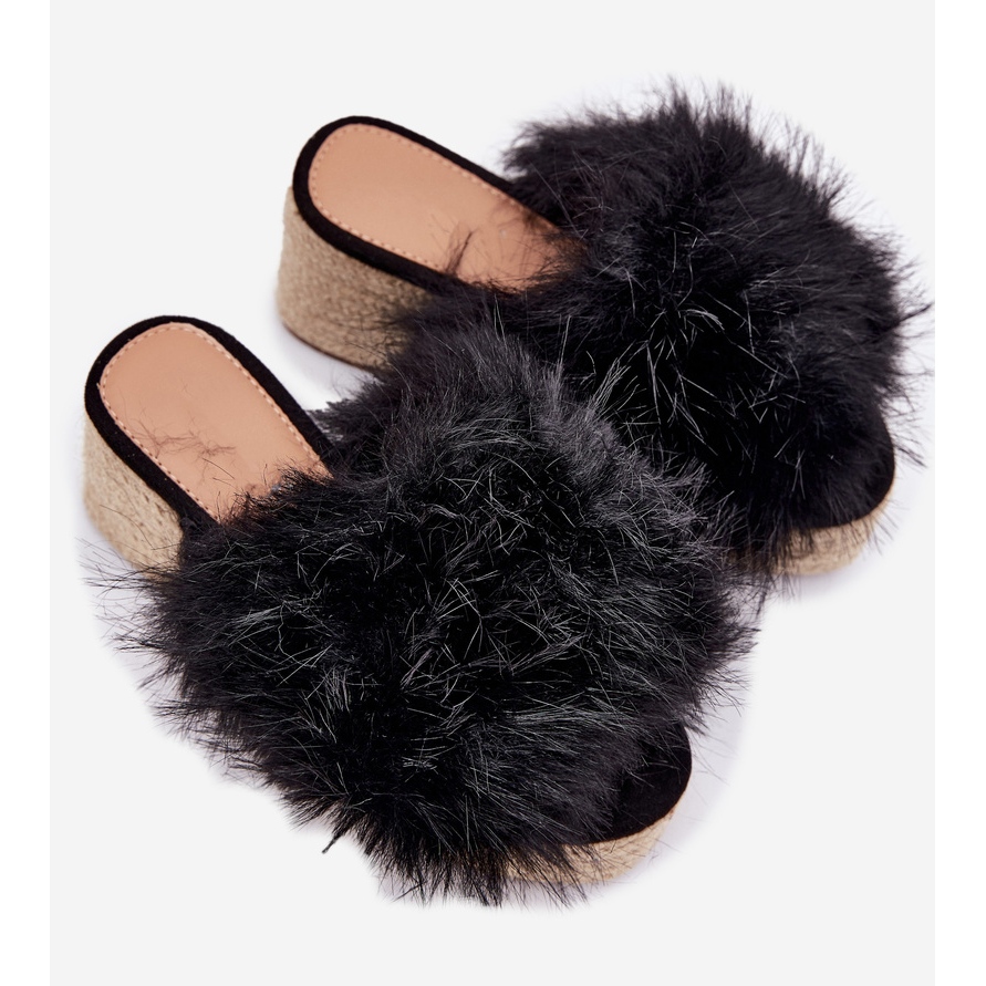 Discover comfort and style with women's wedges with fur and braid in an elegant black color. These unique flip flops, set on a wedge with a height of 8.5 cm and a 4 cm platform, are the perfect choice for summer days when you want to look fashionable and feel comfortable.