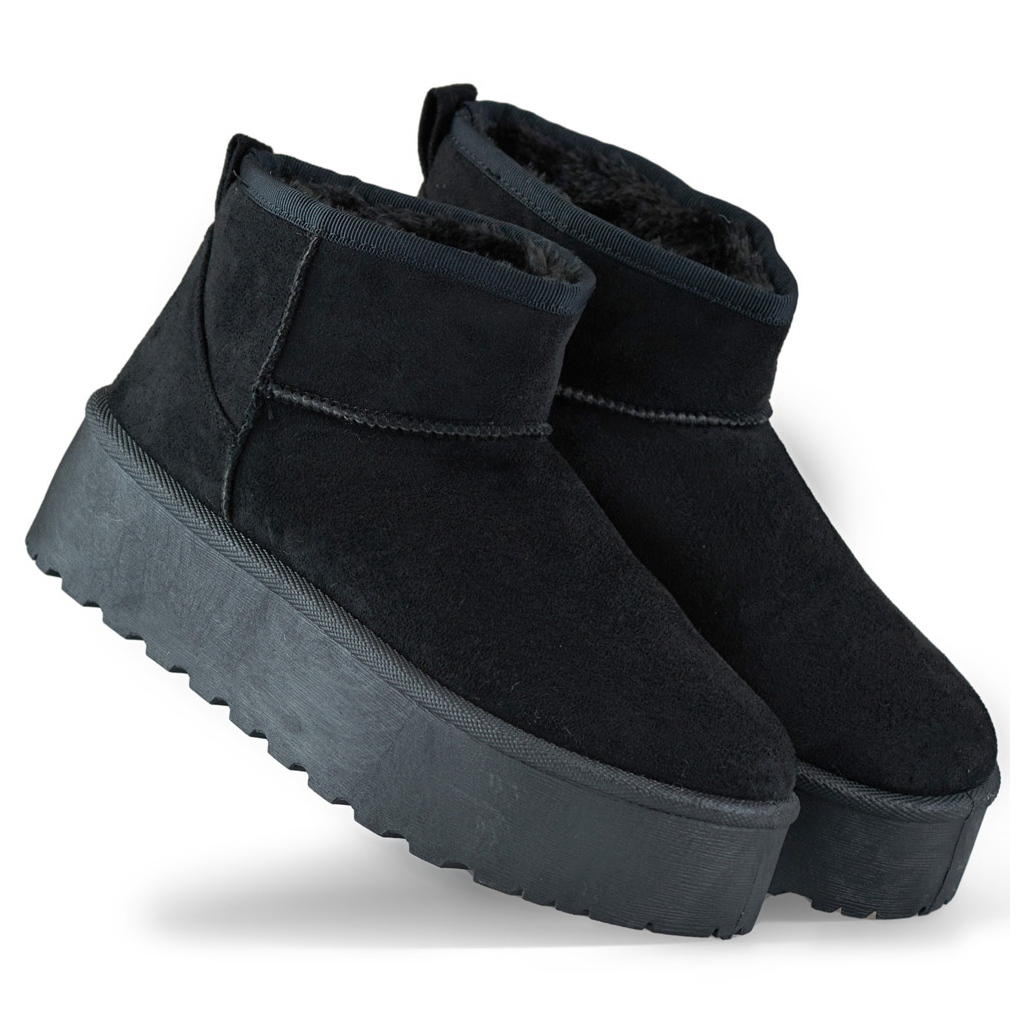 The interior of the snow boots has been carefully insulated with a thick, ecological fur that perfectly protects against cold. Thanks to this, you can enjoy comfort even on the most cold days. This model is distinguished by a massive 4 cm high platform, which effectively insulates the feet from the cold ground, ensuring additional safety and stability.