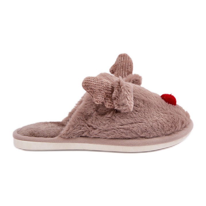 Available in beige with additional red accents, these slippers will introduce a cozy, festive atmosphere to your home. Choose fur slippers with a reindeer motif to fully enjoy cold evenings in a comfortable and stylish way! Also check the film presenting this product [here] (https://butosklep.cfolks.pl/bs/product_video/35156.mp4).