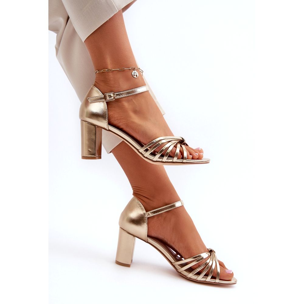 Elegant women's Evento sandals in a golden shade are a perfect combination of style and comfort. Made of high -quality leather insert, they guarantee comfort all day. The heel in the form of a 7 cm high post not only adds grace, but also ensures stability and safety when walking.