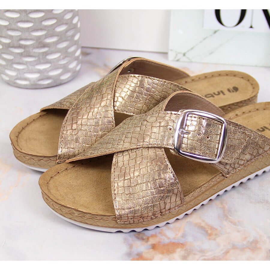 Details: Women's golden Inblu slippers with a buckle