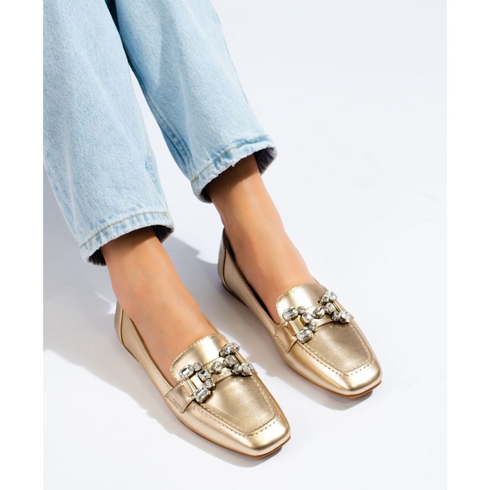 SHELOVET Women's golden loafers with Shelovet embellishment