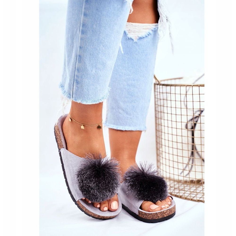 Details: MSMG Women's Gray Slippers On Corks with Pompom Galaxo grey