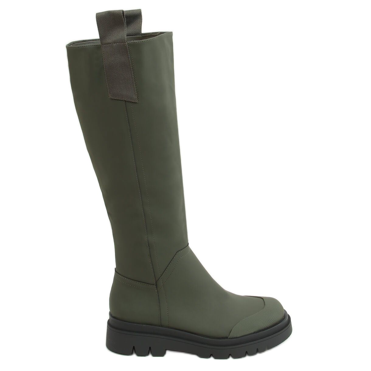 Women's green QT27P Army Green riding boots are a great choice for women who value a fashionable look and everyday comfort. These boots with a high sole are distinguished by a massive construction and an elegant, matte finish, which makes them a real hit in every wardrobe.