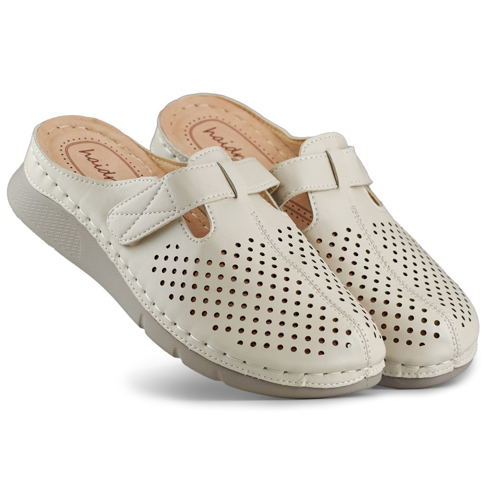 Details: Women's health flip-flops with closed toes and Velcro beige