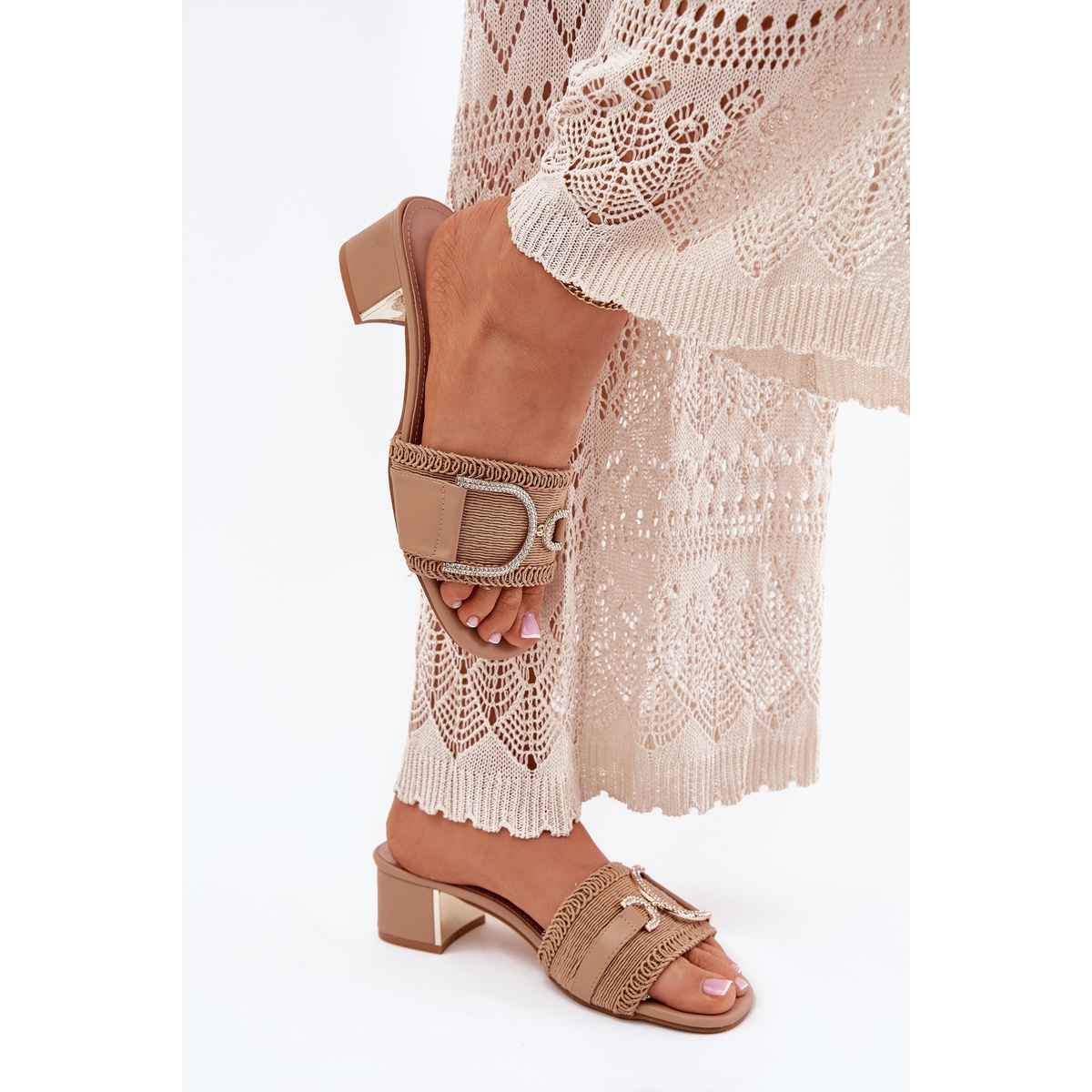 These beige flaps without a nose are inserted, which makes it easier to put on and take off. They blend in perfectly with summer stylizations, both with dresses and casual pants, constituting a perfect complement to any stylization.