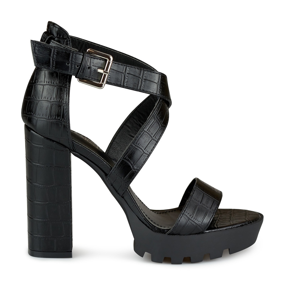 Made of high-quality eco-leather, these sandals are distinguished by their original crocodile imitation pattern, which gives them a unique character. The black color makes them match many styles, adding class and chic. Open toes and a comfortable buckle fastening guarantee easy putting on and a perfect fit to the foot.