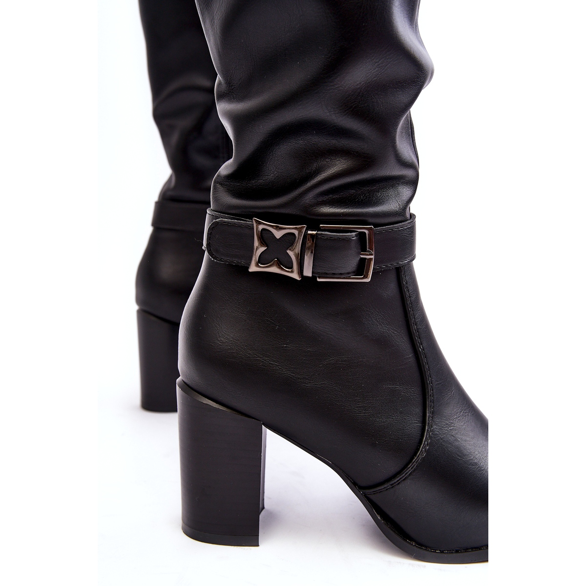 Sergio Leone Sergio Leone Women's High Heel Boots With a Buckle, Warm Black Sendilia