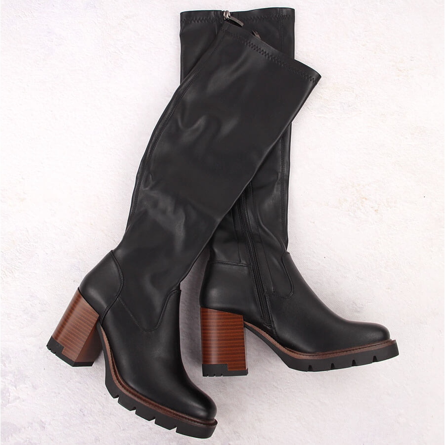 Potocki Women's high-heeled and platform boots, elastic, insulated, black Potocki 12246