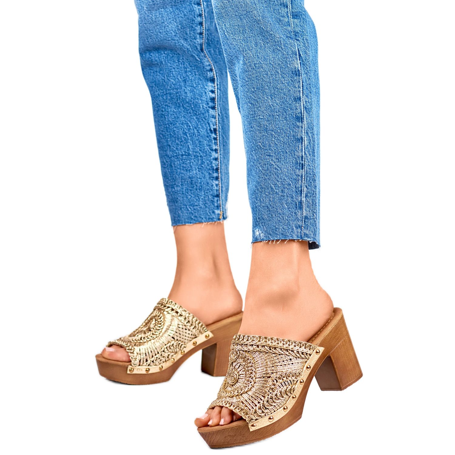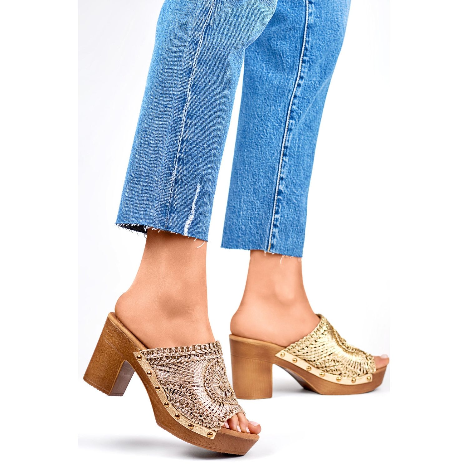 Inna marka Women's high-heeled flip-flops C388GO, gold yellow