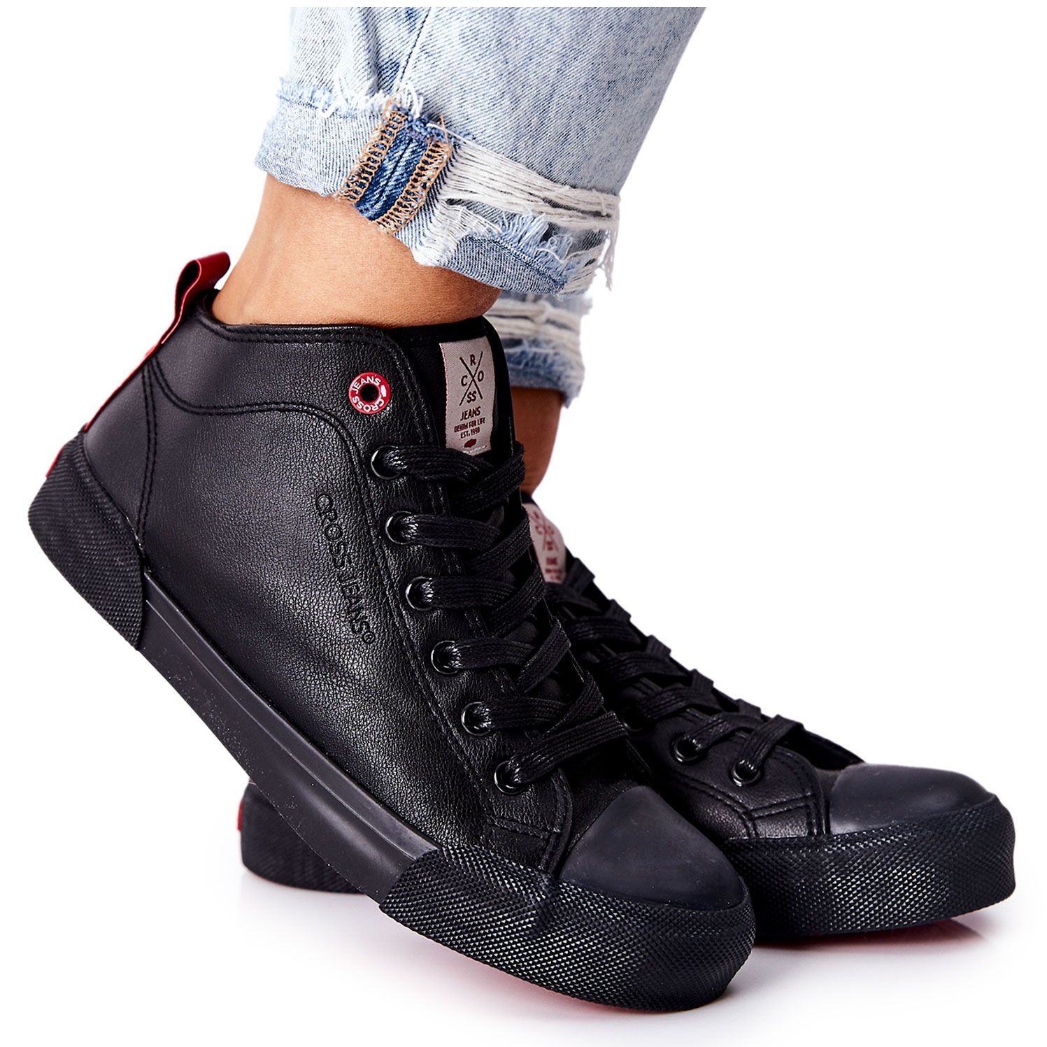 Women's high sneakers Cross Jeans II2R4032C - a classic in a modern edition. Black, minimalist design and ankle -reaching upper of ecological leather make the model perfectly match everyday, urban stylizations - from walking around the city to meetings with friends. Thanks to the higher upper, the shoes will also work on cooler days.