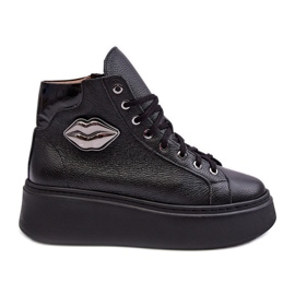 Elegant, high -high -in -law sneakers from Lemar is a combination of classics and a fashionable, massive cut. Made entirely of natural leather (external and insert), mounted on a solid platform, with a practical zip fastener on the side of the upper and lacing for a better fit. A discreet silver accent adds character, while maintaining a universal, black look.