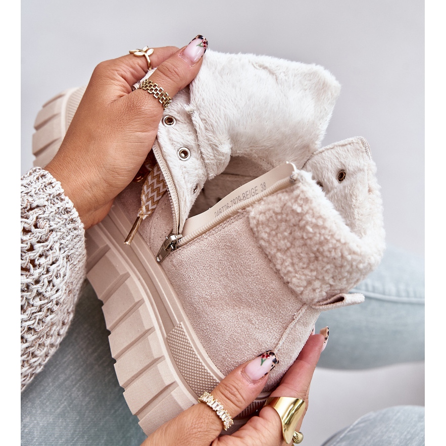 Details: Women's Insulated Ankle Boots Trappers On The Platform Beige Alcyhen