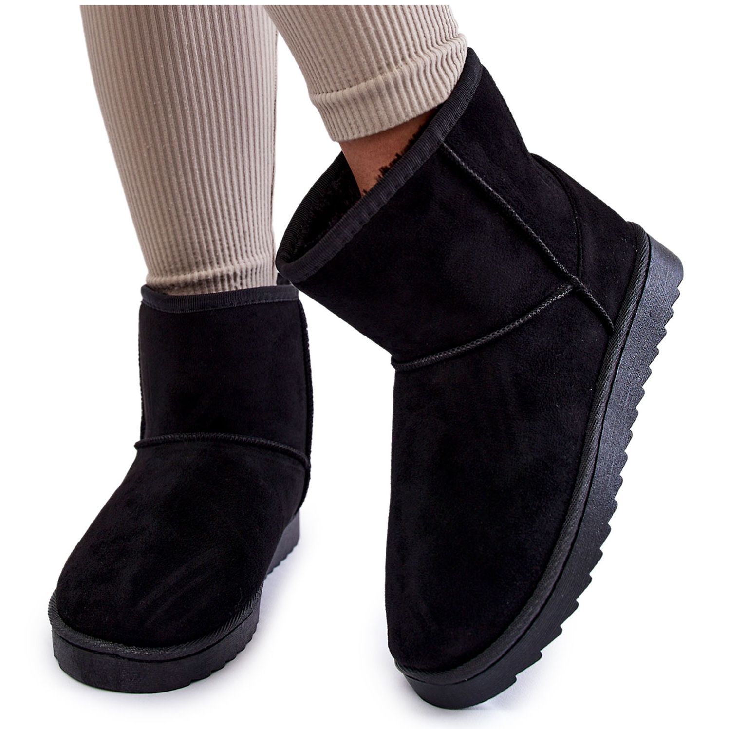 Women's insulated black snow boots - a combination of style, comfort and heat on cold days. Made of eco suede with subtle stitching on the upper, they present a classic, universal cut, which you can easily adapt to winter stylizations - from a down jacket to a long coat. The interior padded with thick ecological fur provides pleasant warming, and the 3 cm high platform effectively insulates from the cold ground, increasing comfort during walks.