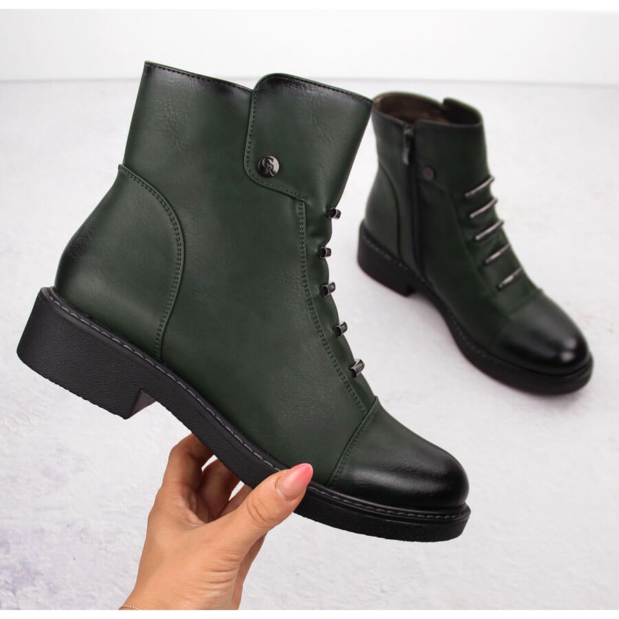 Women's insulated green boots ASA252-5 is the perfect choice for women who value style and comfort in one. Made of high quality ecological leather, these boots not only attract their eyes with their green color, but also guarantee the comfort of wearing thanks to warm fur inside.