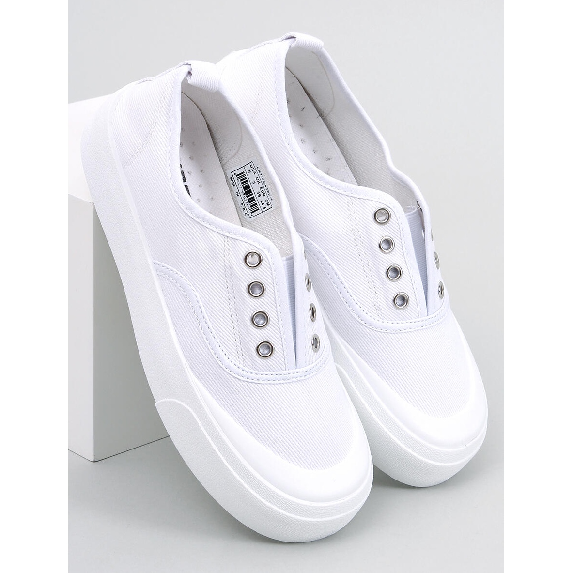 Kamio White sneakers are made of high-quality fabric, which ensures not only lightness but also excellent ventilation. The round toe and 3 cm flat heel make them extremely comfortable even when worn for a long time. Thanks to the slide-on fastening, putting them on and taking them off is simple and quick.