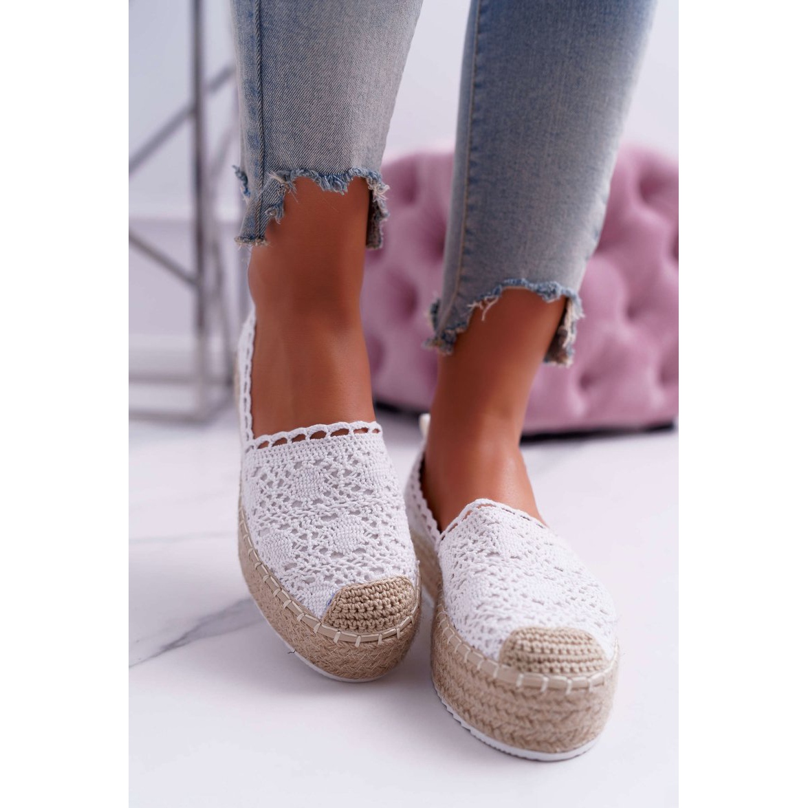 Discover the magical world of fashion and comfort with women's lace espadrilles from the BUGO brand. The Lovely Haven model is a perfect combination of elegance and comfort that will work well in any summer styling. Made of delicate fabric, these white espadrilles will definitely attract attention thanks to their beautiful cut-out patterns and braided string wrapping the soles.