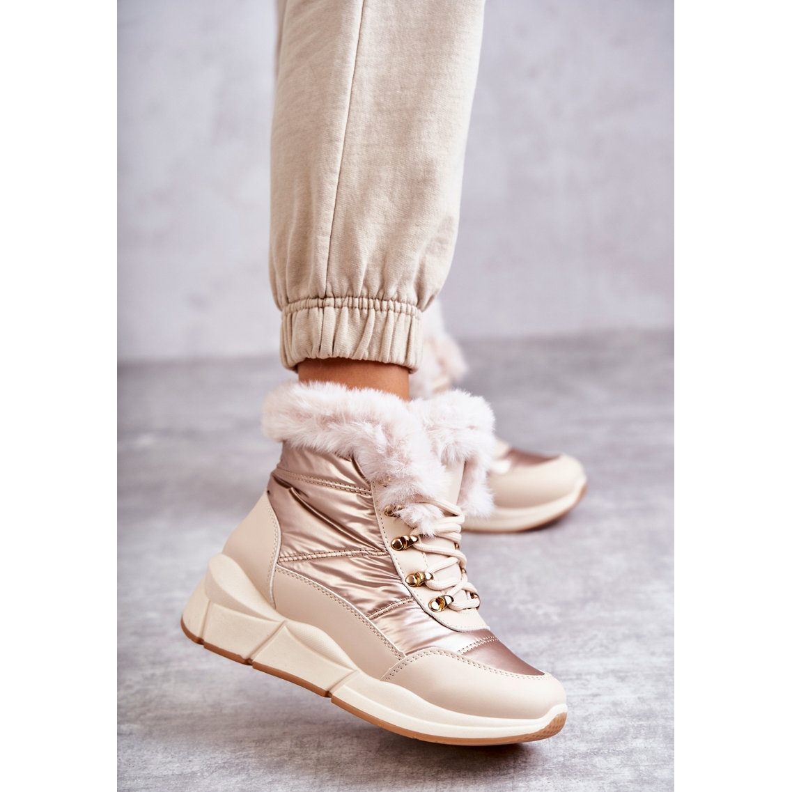 We present a fashionable model of women's lace-up snow boots PE1 in light beige, which will become an inseparable element of your winter wardrobe. Made of material resistant to cold and wind, these snow boots guarantee your feet comfort and warmth even on the coldest days.