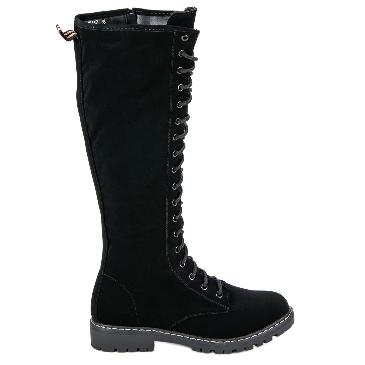 Seastar Lace-up Women's Boots are the perfect choice for the upcoming fall/winter season. These elegant and casual boots, made of slightly aged black material, attract attention with their original design and simplicity of style. Long uppers, reaching to the knee, combined with soft insulation make them not only stylish, but also comfortable and warm.