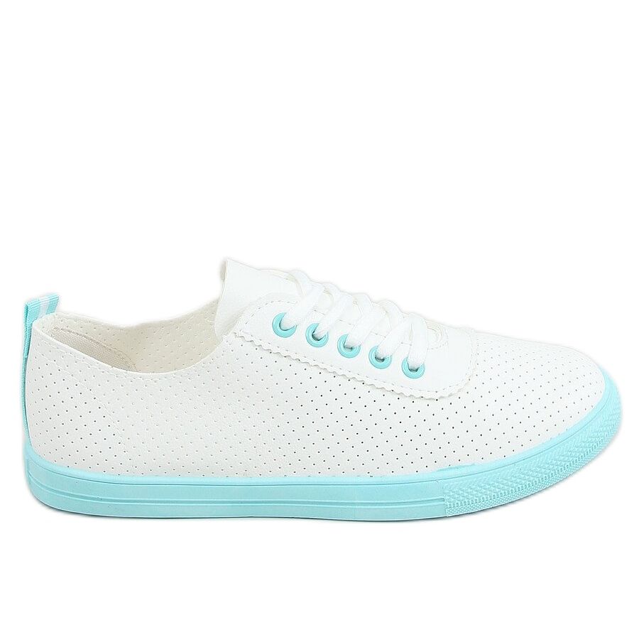 Discover the extraordinary women's lace-up sneakers in white and blue LA44 Blue, which will perfectly complement your everyday style. These two-color shoes are distinguished by contrasting elements, such as belt loops and stylish inserts at the back, which, combined with the original, perforated texture of eco-leather, give them a unique character.
