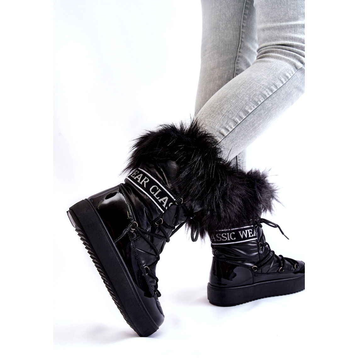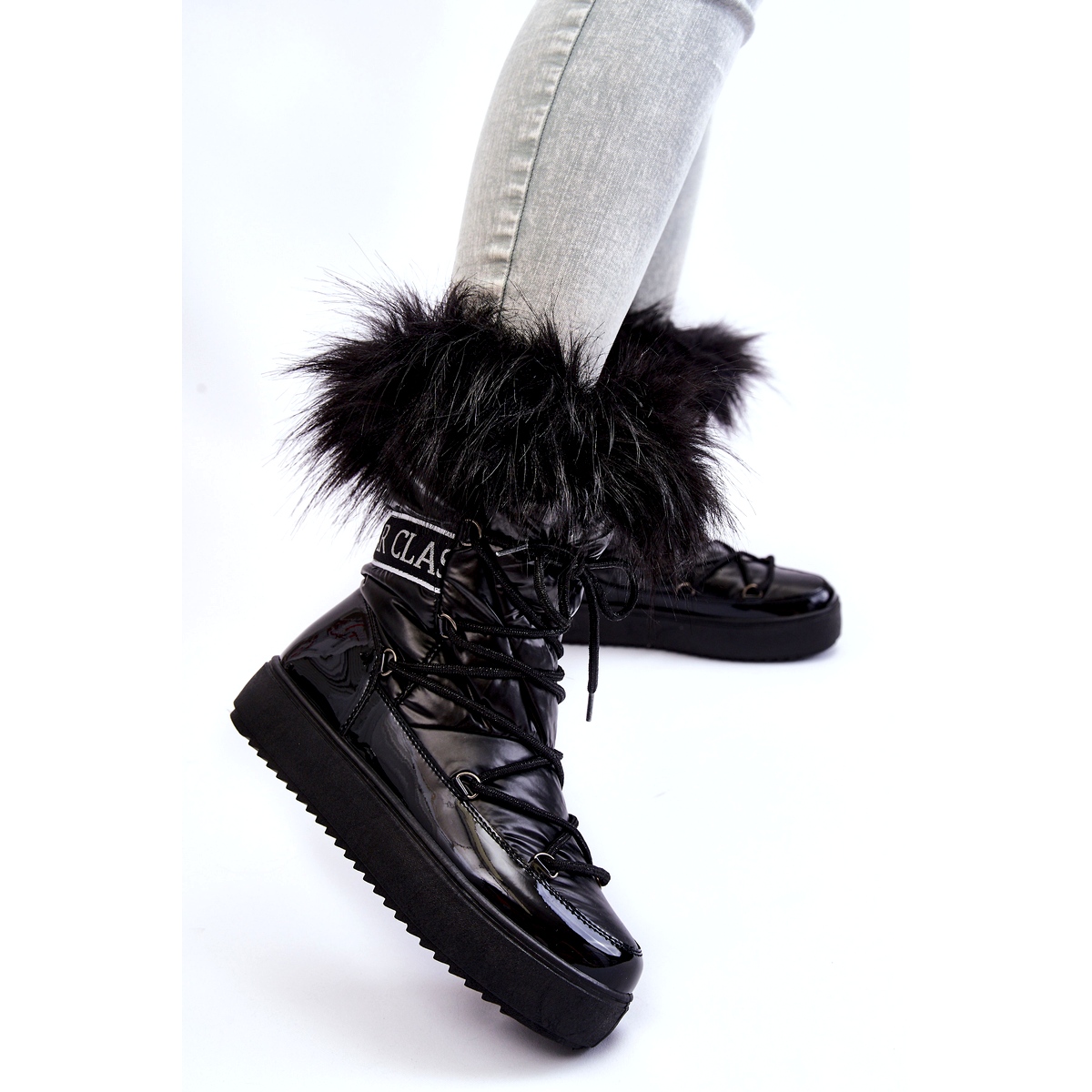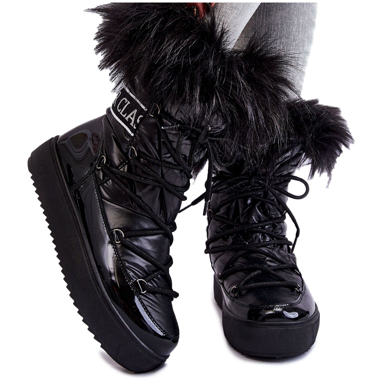 Made of a material resistant to cold and wind, these high snow boots perfectly protect against negative weather conditions. The upper is finished with artificial fur, which adds extra charm and warmth. Thanks to the classy lacing, they can be easily adjusted to your needs, and the massive platform ensures stability and comfort when worn.