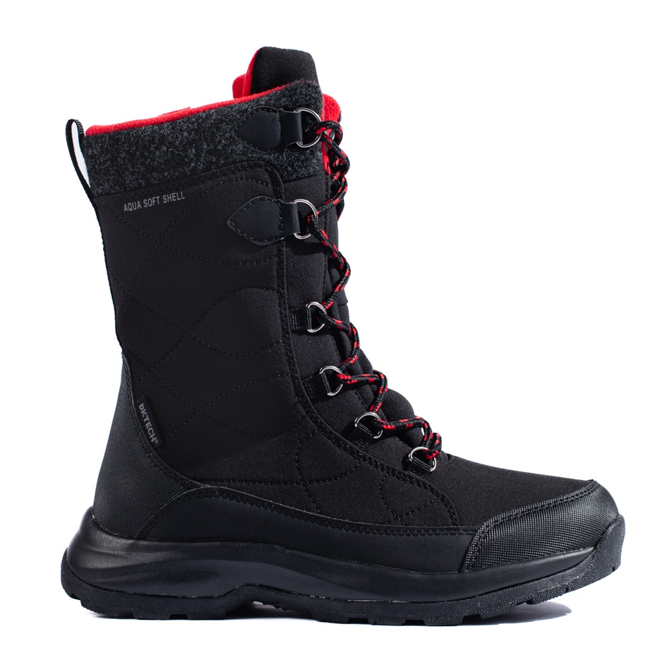 Women's DK waterproof lace-up trekking shoes in black are the perfect choice for lovers of active outdoor activities. Thanks to their waterproof construction, these high boots provide comfort and protection even in difficult weather conditions.